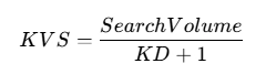 بسیاری از سئوکاران برای پیدا کردن کلمات ارزشمند از یک فرمول ذهنی یا ریاضی ساده استفاده میکنند. شما میخواهید کلمهای پیدا کنید که بیشترین حجم سرچ را با کمترین سختی داشته باشد. میتوانیم یک “امتیاز ارزش کلمه” (Keyword Value Score) را با این فرمول ساده محاسبه کنیم: